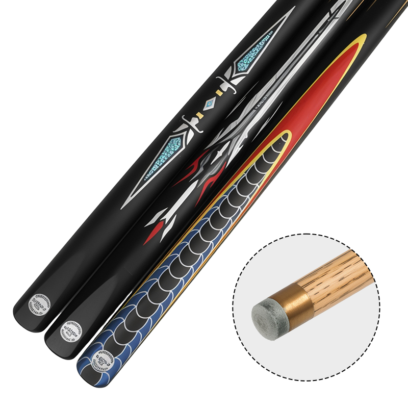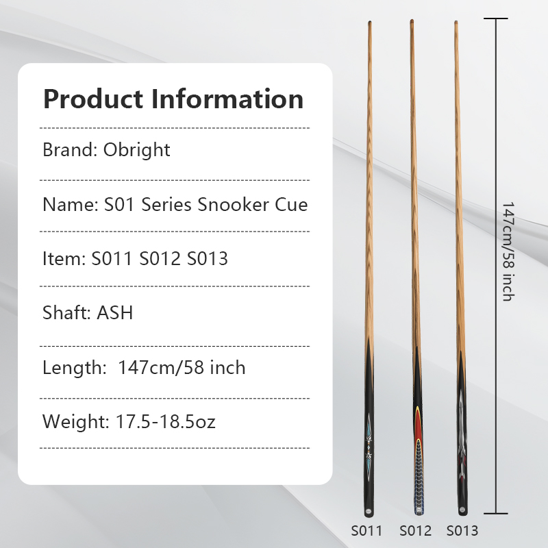 The S01 Series Snooker Cue Stick is made of durable Ash wood,Clear sword patterns,Butt with a matte finish,this anti-sweat,anti-slip,non-slip butt is specially designed for players of public billiard room.