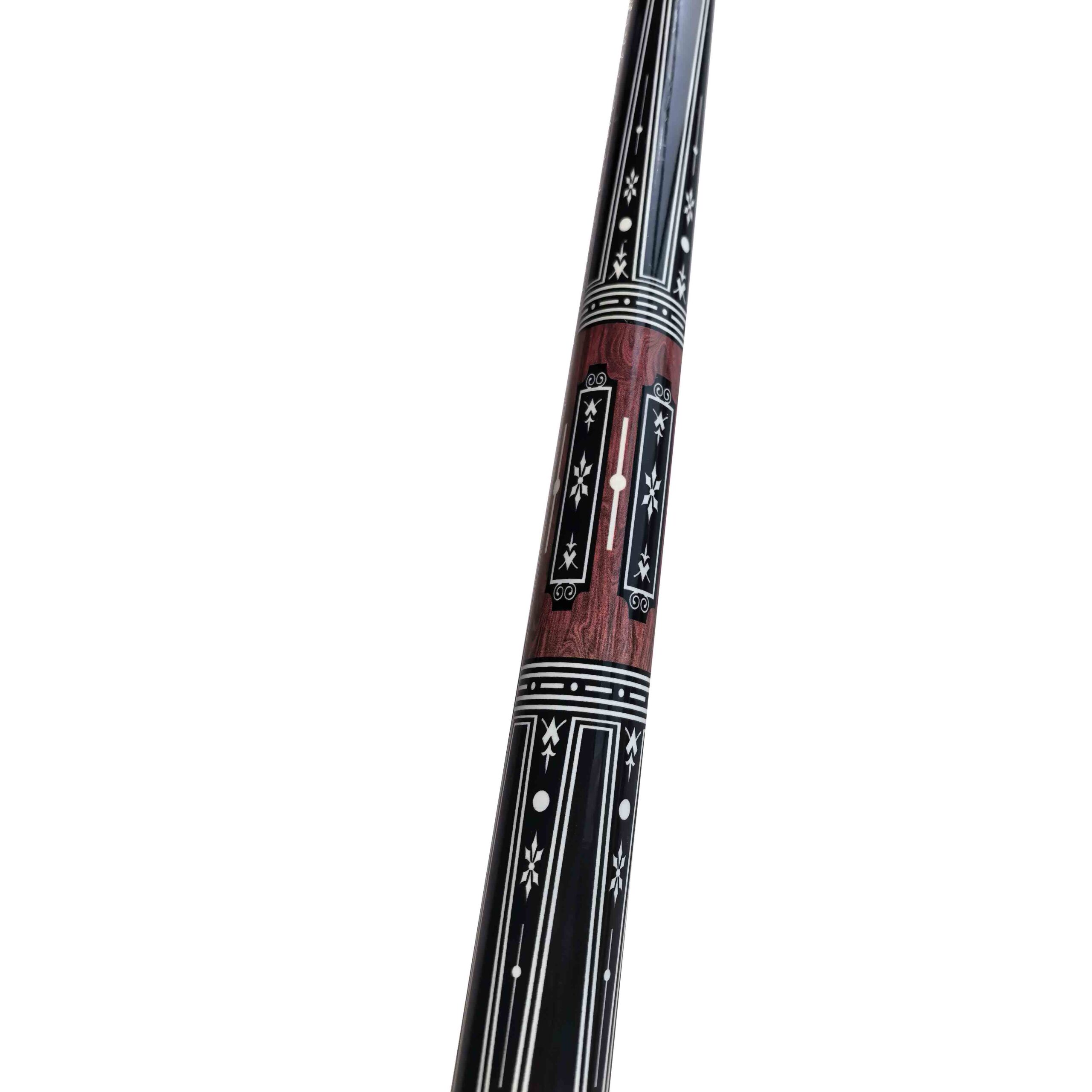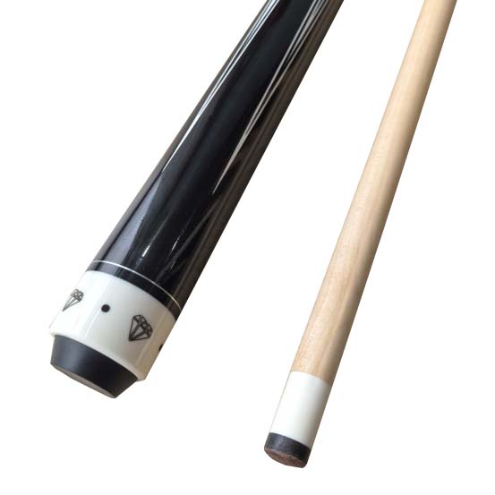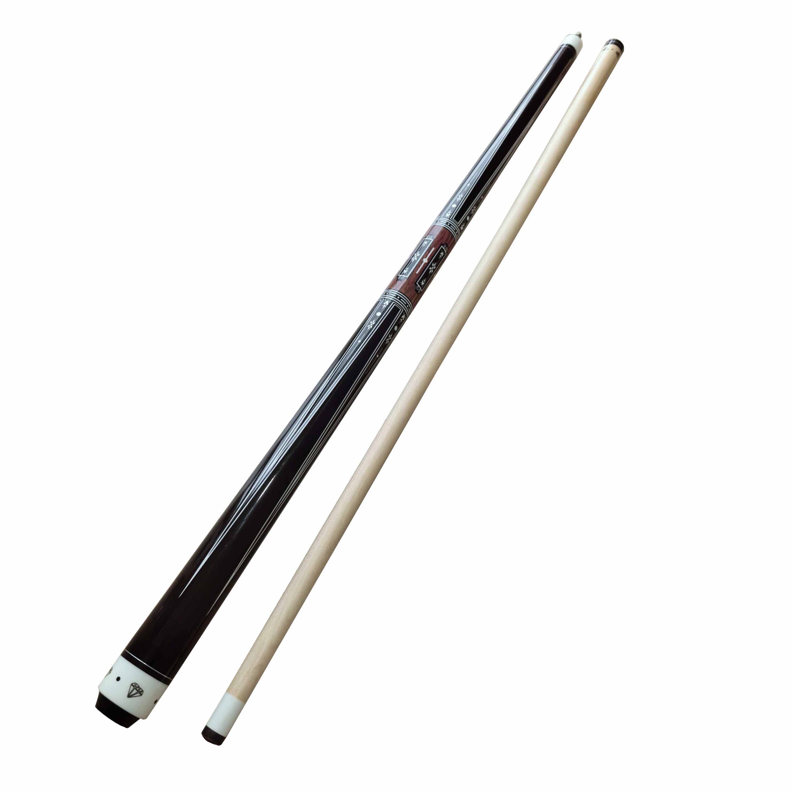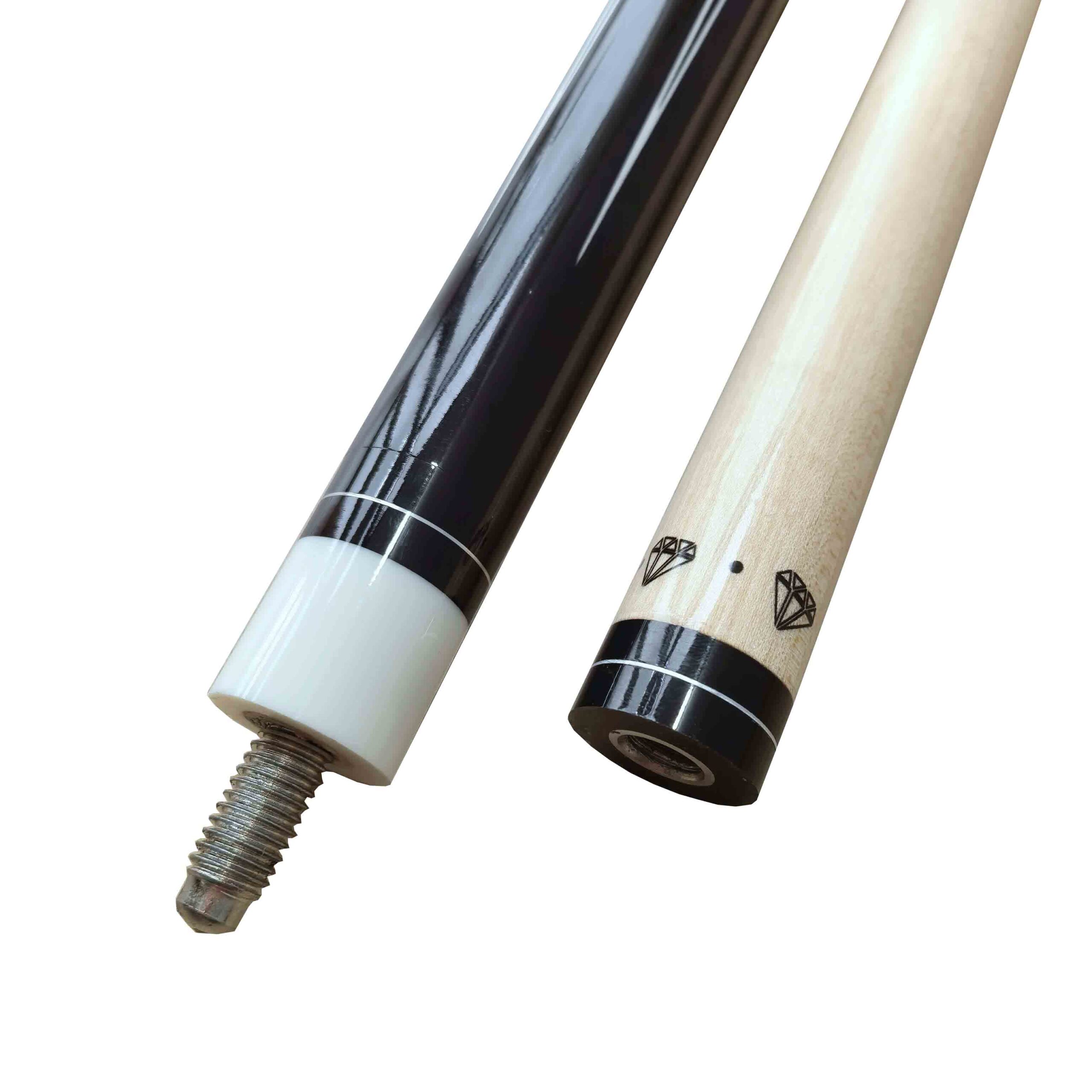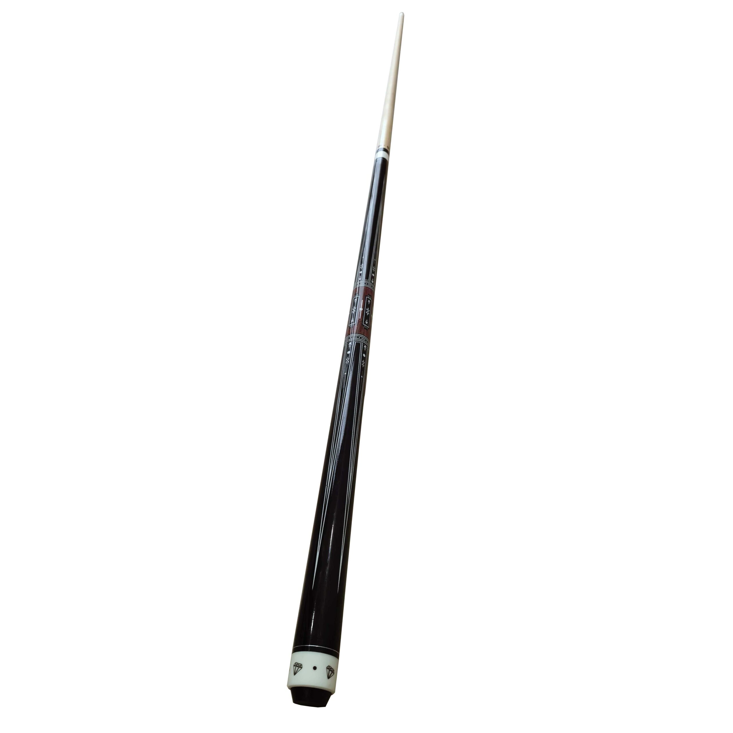 This two Pieces billiard cue made from maple(Grade B),12.8mm bakelite tip,white furrule,black butt with big decal,not only simple and elegant appearance,but also good straightness, highly cost effective.It is worth to purchase as public pool stick. A good entry-level cue.